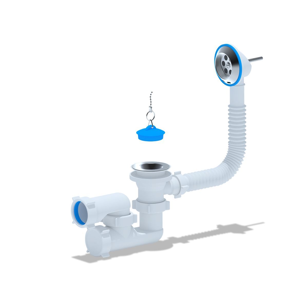 • Для ванн с отверстием слива Ø50 мм и отверстием перелива от Ø36 до 63 мм (стандартное отверстие 50 мм)