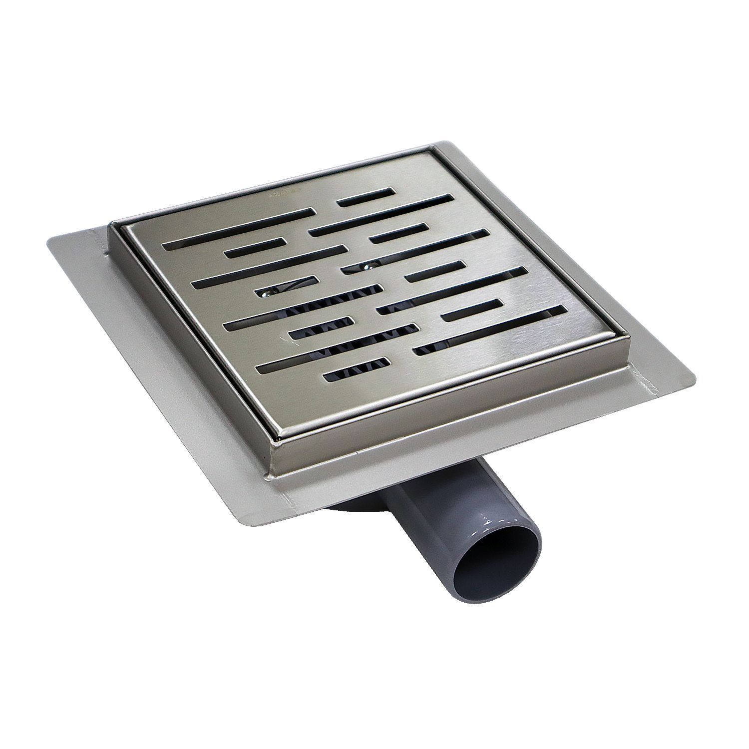 Трап для душа AZARIO 150х150 металлический, поворотный сифон 360°, перфорированная решетка, горизонтальный выпуск (AZZ3150)