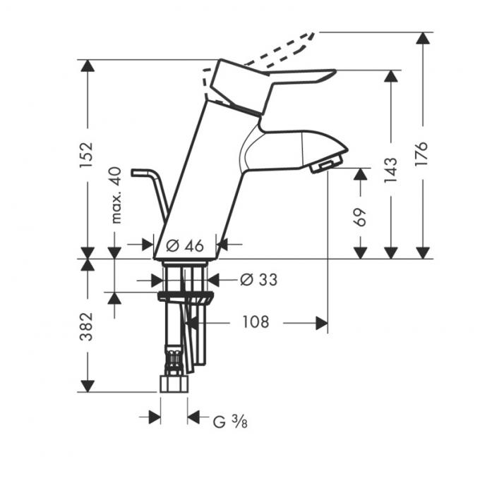 Высота излива: 70 мм;