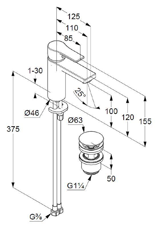 Подключение: гибкая подводка G 3/8.