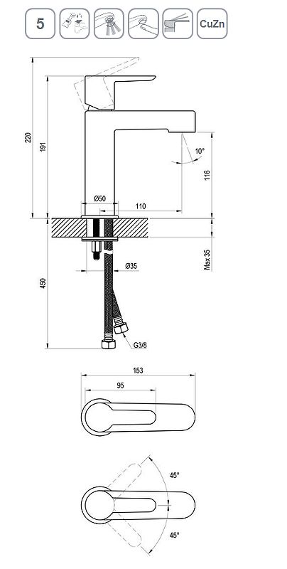 —Смеситель для раковины Ravak Puri PU 014.20 керамический картридж, черный матовый (X070181)