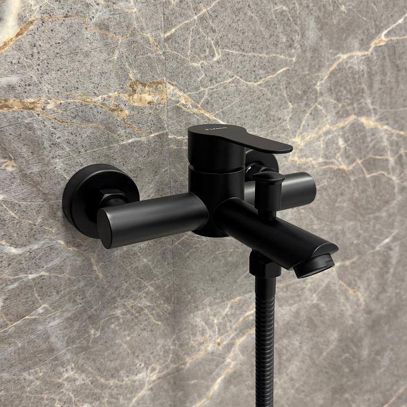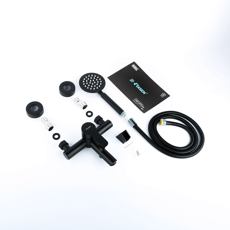—Смеситель для ванны Fixen NORDIC однорычажный, керамический картридж, с душевым набором, черный (FX-8803B)