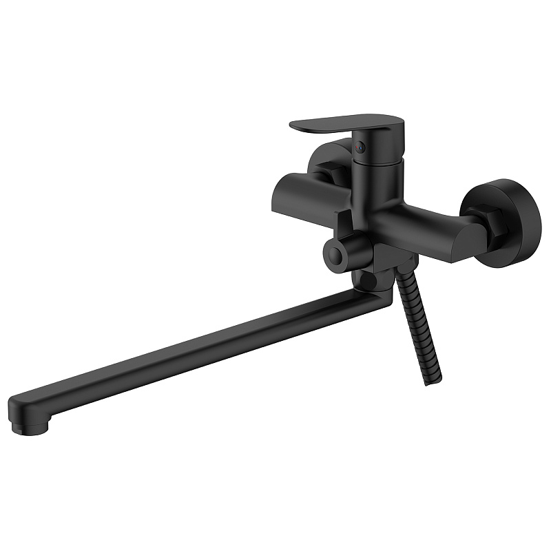 —Смеситель для ванны Azario Alanti керамический картридж, длинный излив, с ручным душем, шланг 150 см, черный матовый (AZ-K1732B)