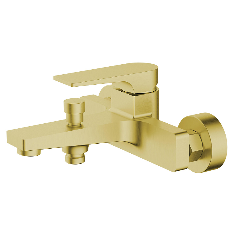 —Смеситель для ванны Azario Arida керамический картридж, с ручным душем, шланг 150 см, золото матовое (AZ-K3054MG)