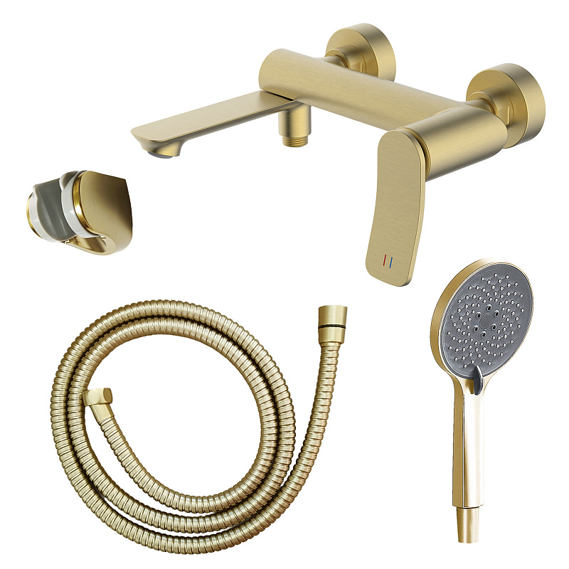 —Смеситель для ванны Azario Escaro с ручным душем, керамический картридж, шланг 150 см, золото матовое (AZ-K3074MG)