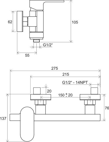Смеситель для душа Ravak Chrome CR 032.00/150, 150 мм, однорычажный, хром (X070043)
