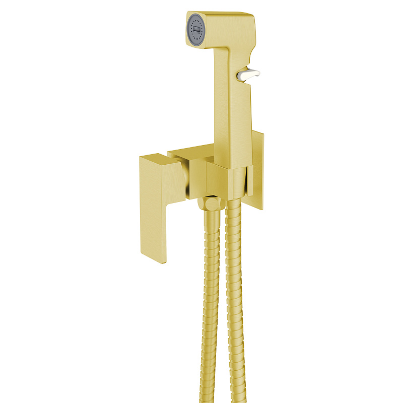 —Гигиенический душ Azario Graves со смесителем, керамический картридж, скрытый монтаж, шланг 150 см, золото матовое (AZ-KFX03MG)