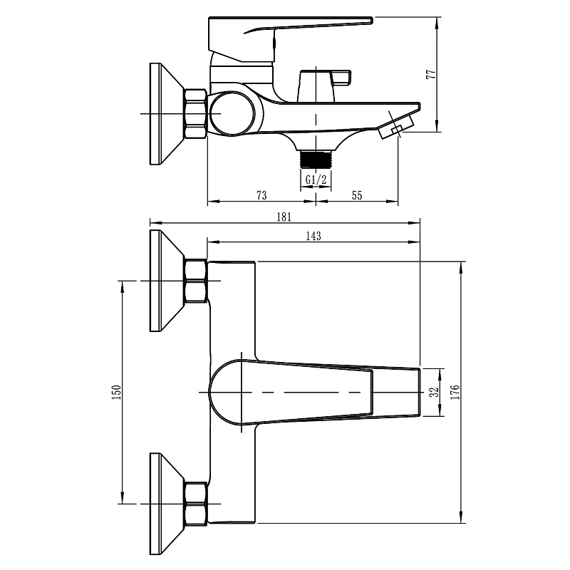 —Смеситель для ванны LORANTO SOFIA керамический картридж, с полным душевым набором, хром (LR30273001)