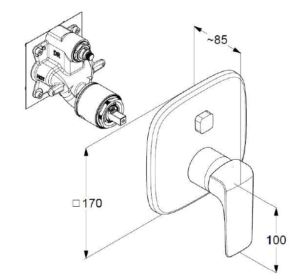 —Встраиваемый смеситель KLUDI AMEO для ванны и душа; автом. переключатель душ/ванна PUSH&SWITCH, хром (416590575)