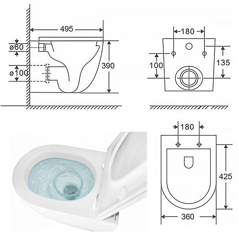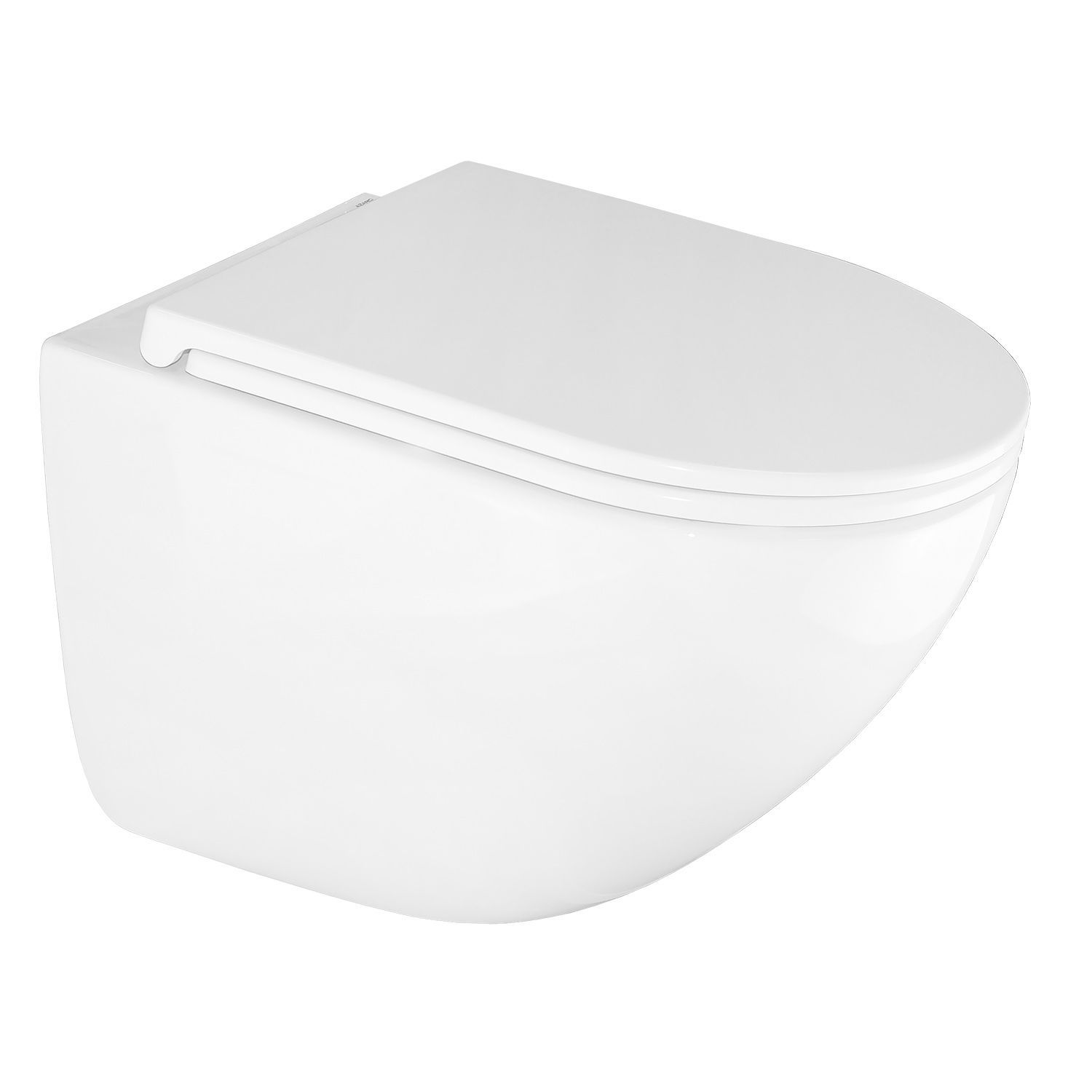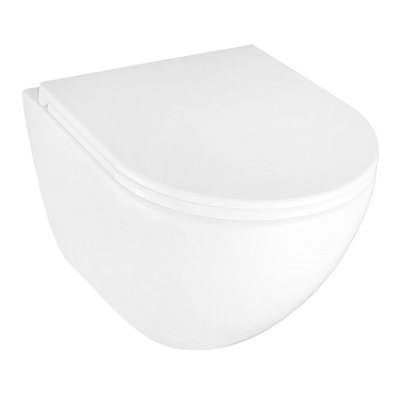 —Унитаз подвесной Azario Trevi 495х360х390 безободковый, слив "Скрытое Торнадо", в комплекте с сидением микролифт, белый (AZ-0093UQ3)