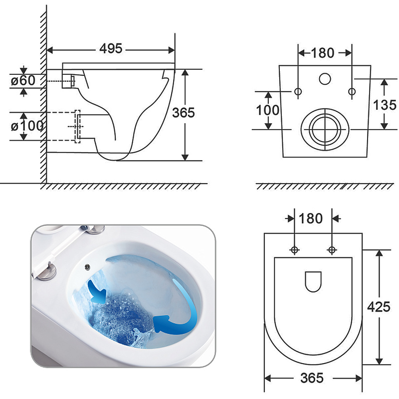 Инновационная безободковая технология обеспечивает полный доступ к внутренней поверхности чаши, гарантируя идеальную чистоту и упрощая процесс уборки. Вода равномерно омывает всю поверхность, не оставляя шансов загрязнениям.