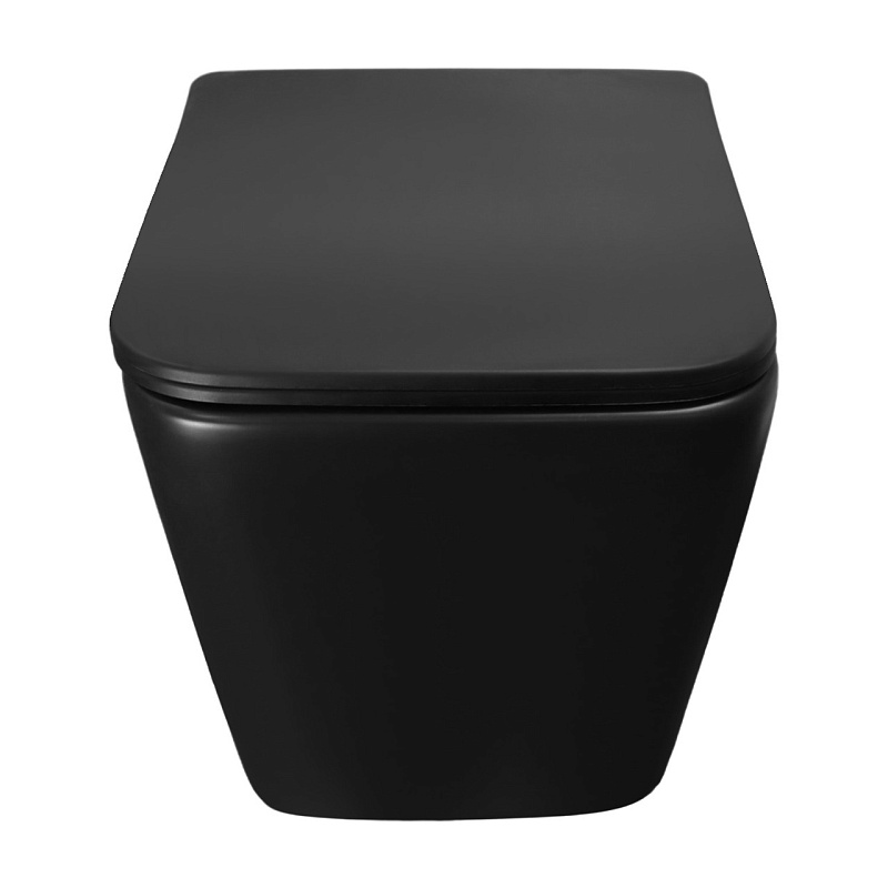 —Унитаз подвесной Azario Дейзи Блэк 355х515х340 безободковый, система смыва "скрытое Торнадо", с быстросъемным сиденьем "Микролифт", черный матовый (AZ-W05-SB)