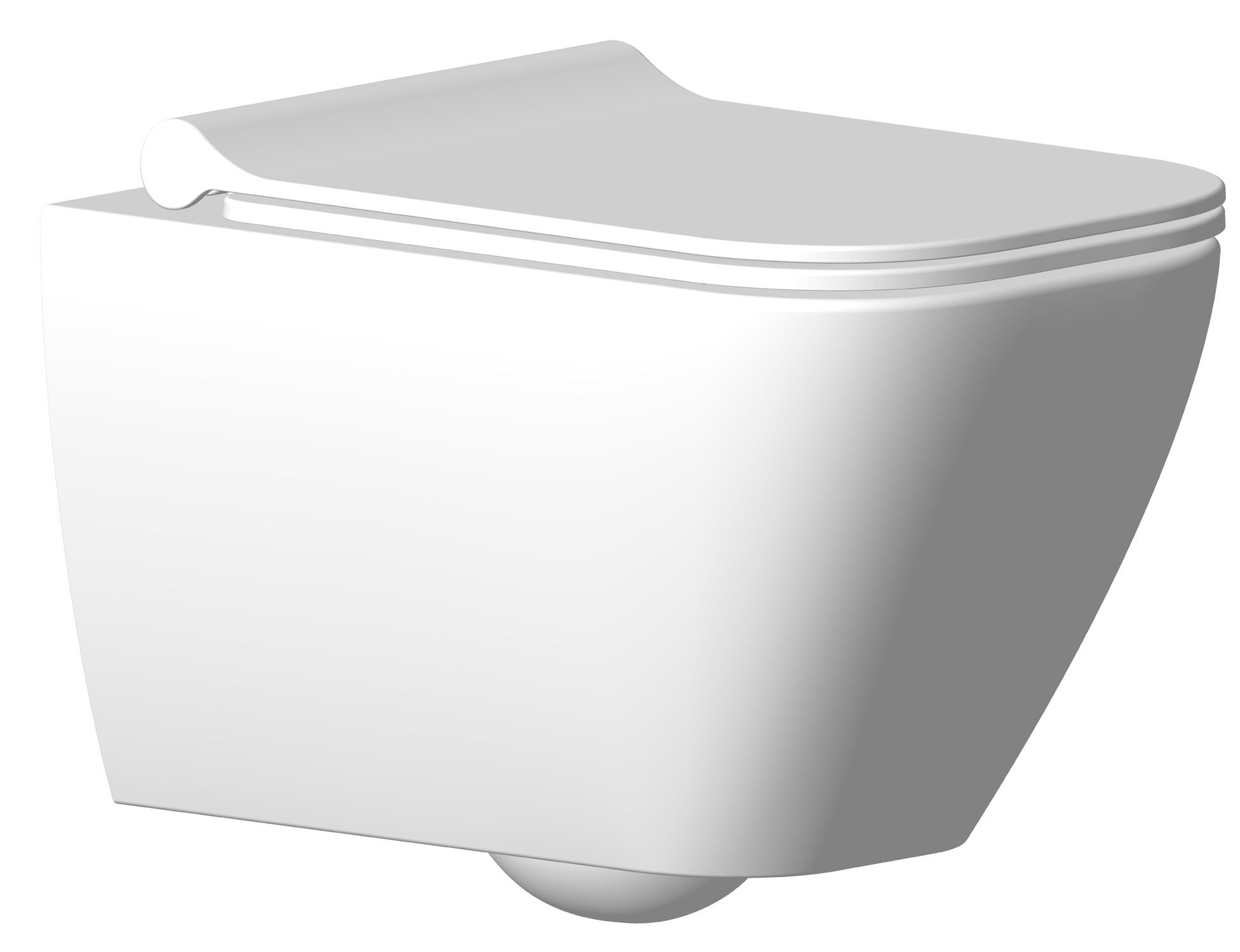 —Унитаз подвесной Seramiksan Saturn 360х500х350 безободковый, с тонким сиденьем микролифт, белый (A141151H+A090001)