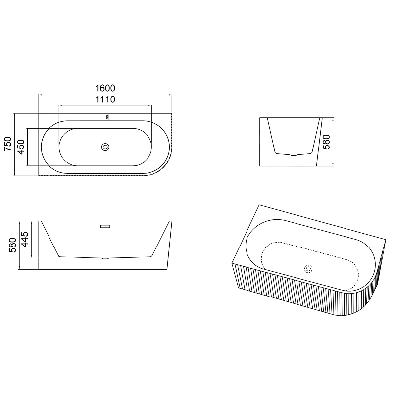 Рифленая внешняя поверхность: Уникальная рифленая текстура внешней поверхности не только придает ванне изысканный и современный вид, но и обеспечивает дополнительное сцепление, предотвращая скольжение и повышая безопасность.