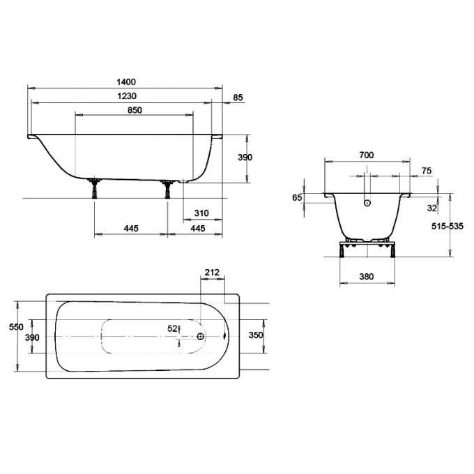 Ванна стальная Kaldewei EUROWA 140х70 пристенная (119512030001)