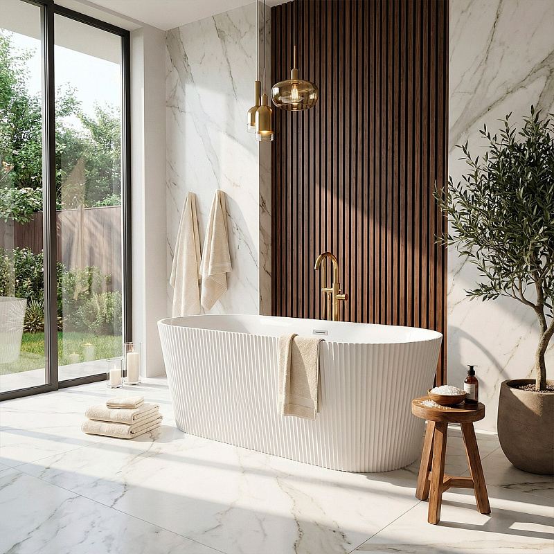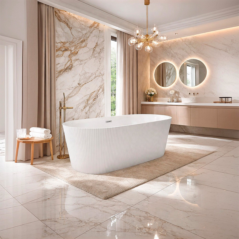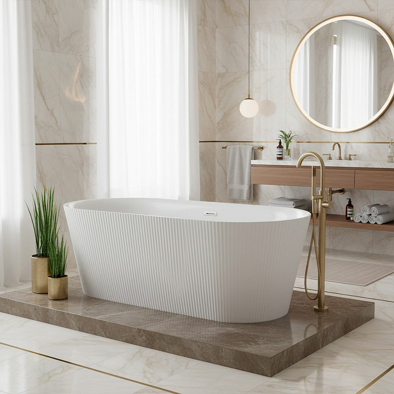 Ванна акриловая Azario ROUSE — стильное и функциональное решение для вашей ванной комнаты. Отдельностоящая овальная ванна выполнена из высококачественного акрила, обеспечивающего долговечность, теплоизоляцию и комфорт при использовании. Рифленые внешние стенки придают изделию оригинальный современный дизайн.
