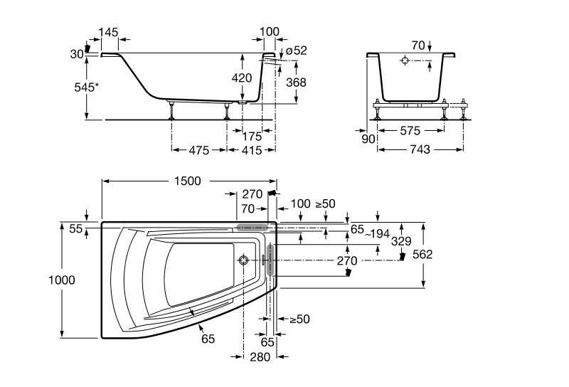 Толщина ванны, мм