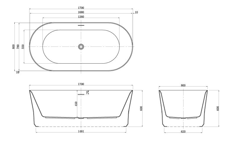 —Ванна акриловая Azario KENSTON 170х80 отдельностоящая (KEN17080)